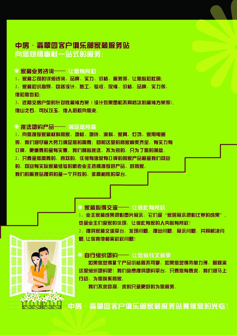 中房•翡翠園客戶俱樂部家裝服務(wù)站11月22日正式啟動(dòng)